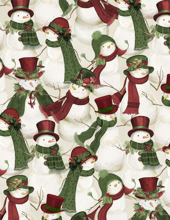 The Woodland Snowmen collection by Danielle Leone is a charming winter-themed assortment, featuring a large panel, repeating stripe and patterns with playful snowmen, woodland critters, and delicate snowflakes all in wintry cream, red, and green colorways.
