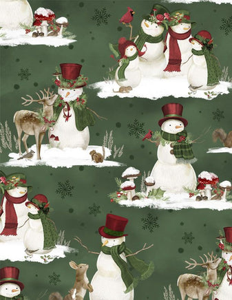 The Woodland Snowmen collection by Danielle Leone is a charming winter-themed assortment, featuring a large panel, repeating stripe and patterns with playful snowmen, woodland critters, and delicate snowflakes all in wintry cream, red, and green colorways.