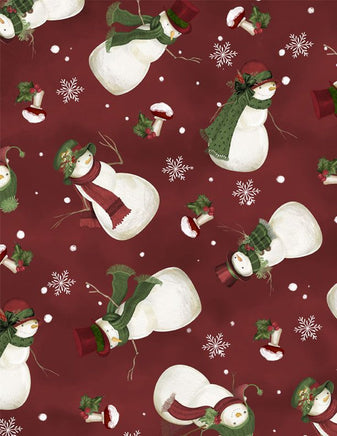 The Woodland Snowmen collection by Danielle Leone is a charming winter-themed assortment, featuring a large panel, repeating stripe and patterns with playful snowmen, woodland critters, and delicate snowflakes all in wintry cream, red, and green colorways.