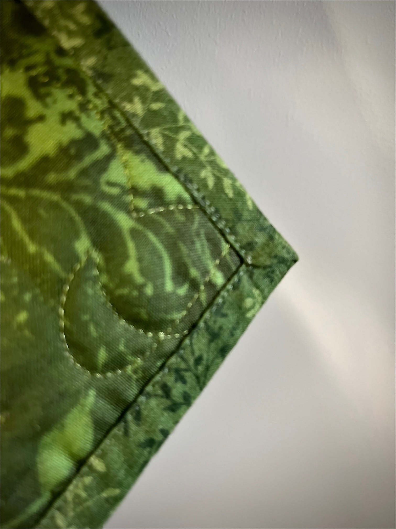 I also added the binding to this quilt. I have been working on my machine binding technique. I prefer doing my machine binding to the front and then again sewing from the front, running a sewing line in the ditch of the binding and catching the back. It has taken some time to finalize this technique, and it is not as straight forward as I would like. It requires 3 different feet (yes 3 different passes) but it comes out with the traditional binding look on the front which makes me very happy.
