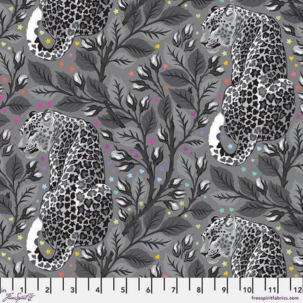 "Graywork began as a collection of all gray prints and slowly blossomed  to include touches of color to spice things up.  I focused on animals that live their lives in shades of gray; Wolves, Bears, Snow Leopards, Puffins and Sea Lions. These eight prints are big and illustrative, packed with details designed for fussy cutting as the stars of the show."  Tula Pink