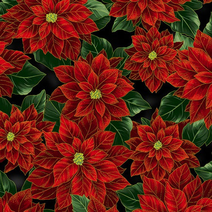 Holiday Wishes : Poinsettias Black-Gold 7766-4