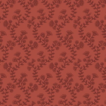 In a follow up to Abbeys Treasures, Missie Carpenter has included a beautiful classic design with flowers and birds in ivory and rich cocoa along with coordinating stripes. This collection also includes patterns with Missie’s signature palette of rich reds, purples, cheddars, ivories, purples and teals.