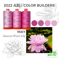 This year's color inspiration is from 12 breathtaking rainforest plants from the Amazon Water Lily and the Bird of Paradise to the Jade Vine and the Spider Lily. These plants are a representation of our earth’s most threatened tropical forests, largely affected by deforestation and climate change. For 2022, Aurifil has partnered with Rainforest Trust, an organization dedicated to the long-term protection of these forests.