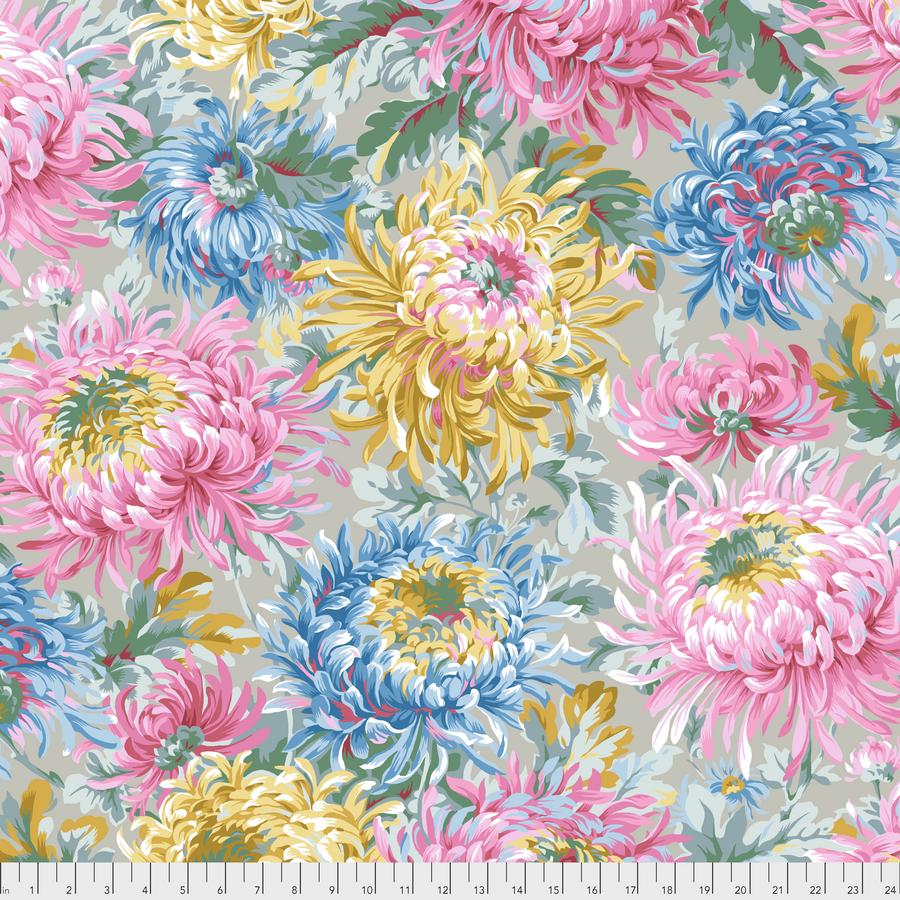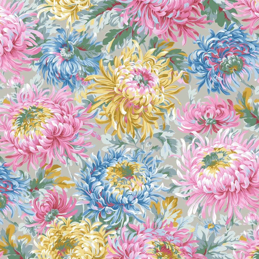 Kaffe Fassett is all about color and bold and bright florals. This is the Shaggy design in Grey