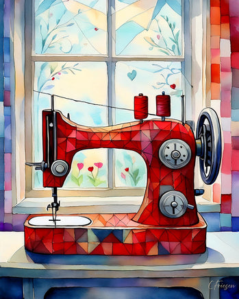 Quiltberry Farm’s Machine Pageant Collection presents “Miss July.” This lovely red and blue patriotic sewing machine design is a perfect greeting card for celebrating Independence Day and July birthdays! This A2 (4.25” x 5.5”) card comes with a size matched envelope.